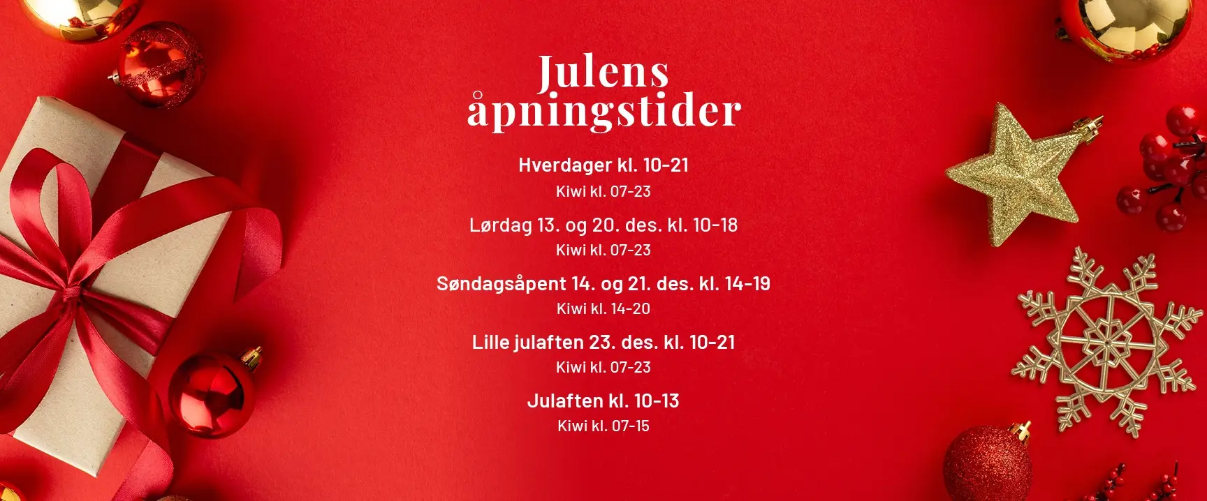 Åpningstider - lørdag 13. desember: